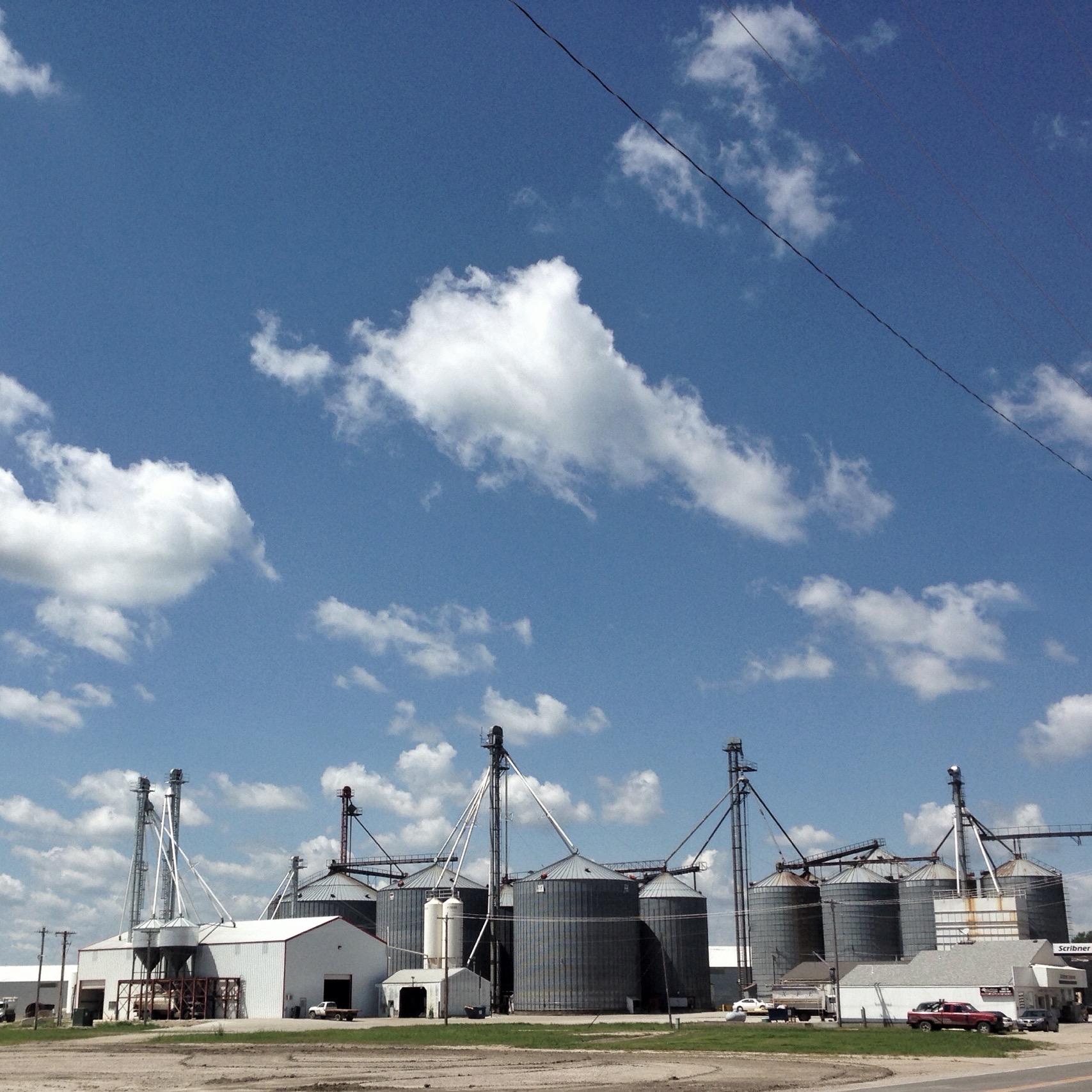 The road into West Point features a large advertisement by West Point Dairy claiming they are hiring. What caught my eye was the $1,000 signing on bonus. What caught my eye amid the open, green landscape of Nebraska’s farmland was the juxtaposition of man-made protuberances. An array of steel mounds, spires, ribs and rails appeared as half finished fun fairs, fantastic and gleamingly enticing in their surroundings, like the set in Fellini’s 8½.